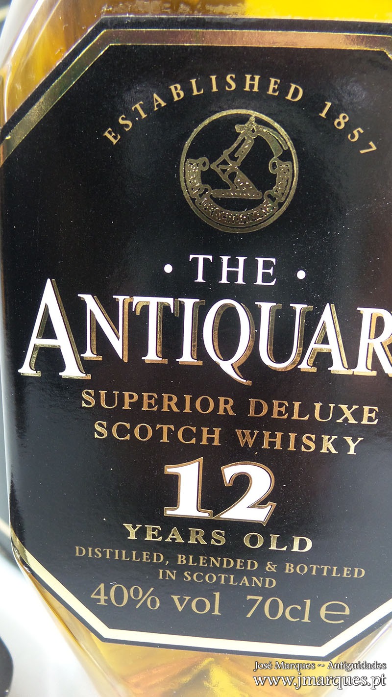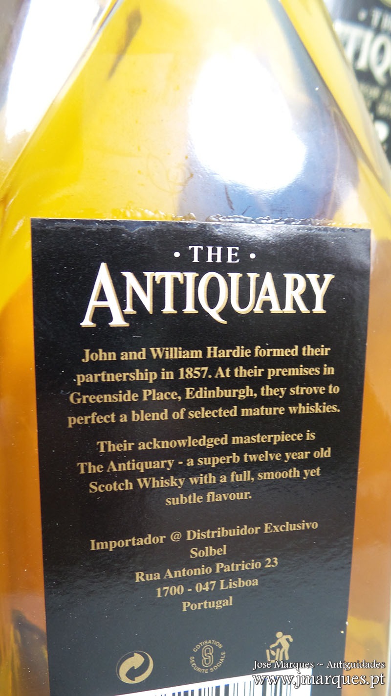 Garrafa antiga de Whisky Antiquary 12 Anos.