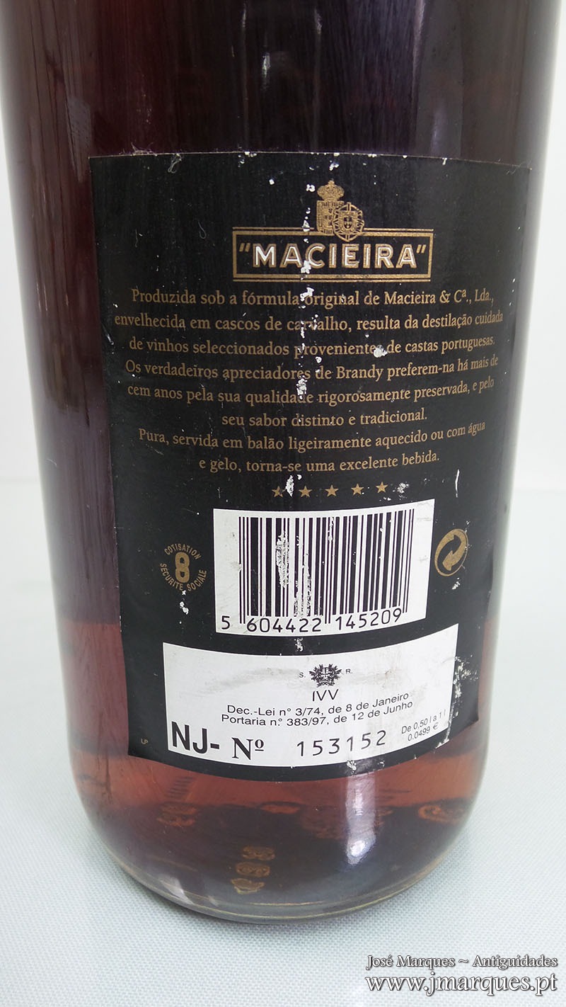 Garrafa antiga de Brandy Macieira 5 Estrelas.
