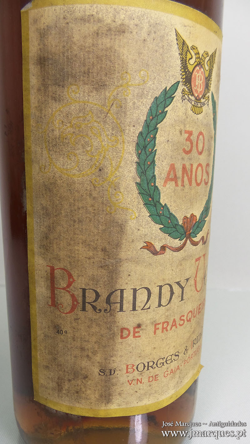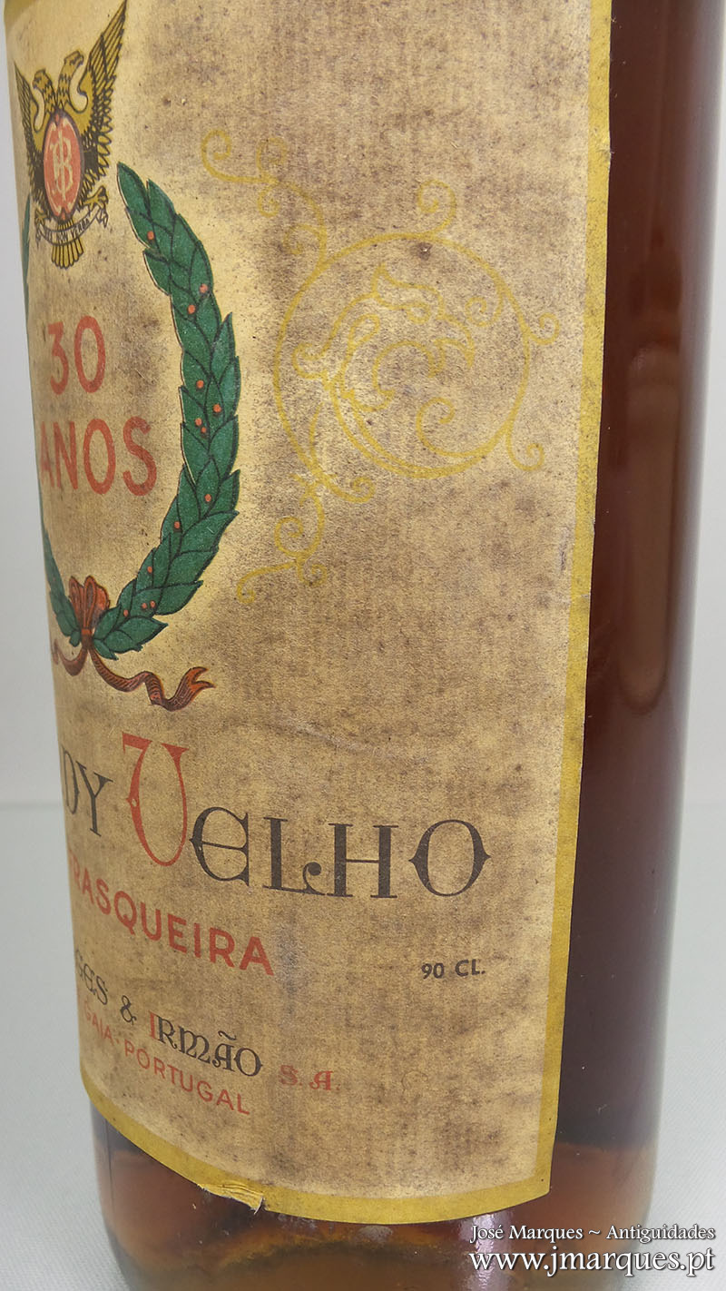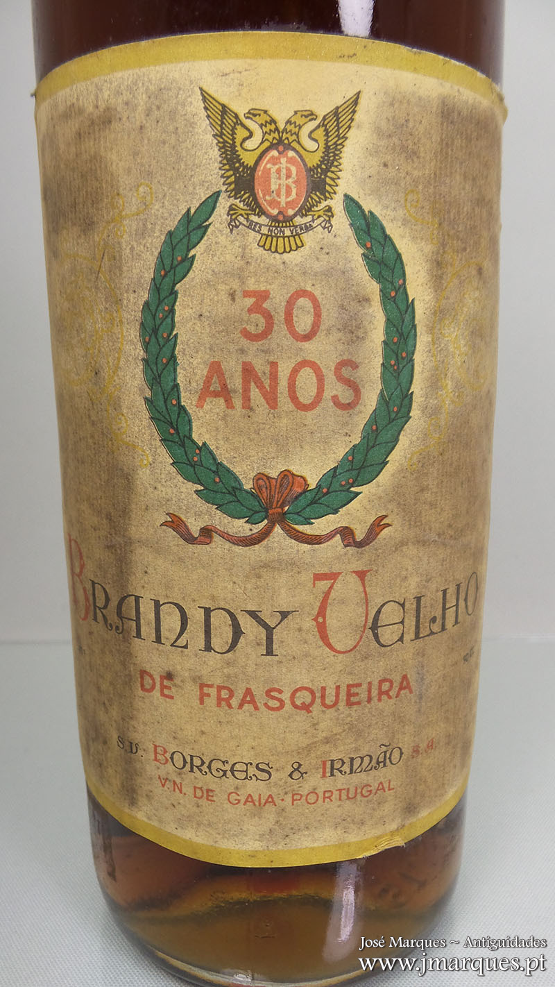 Garrafa antiga de Brandy Velho Frasqueira 30 Anos - Borges & Irmão.