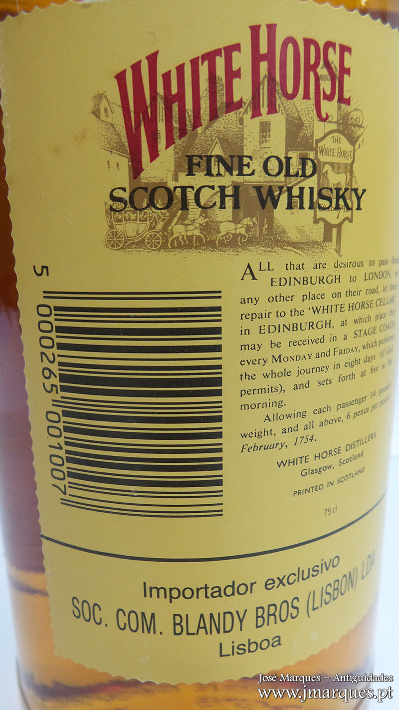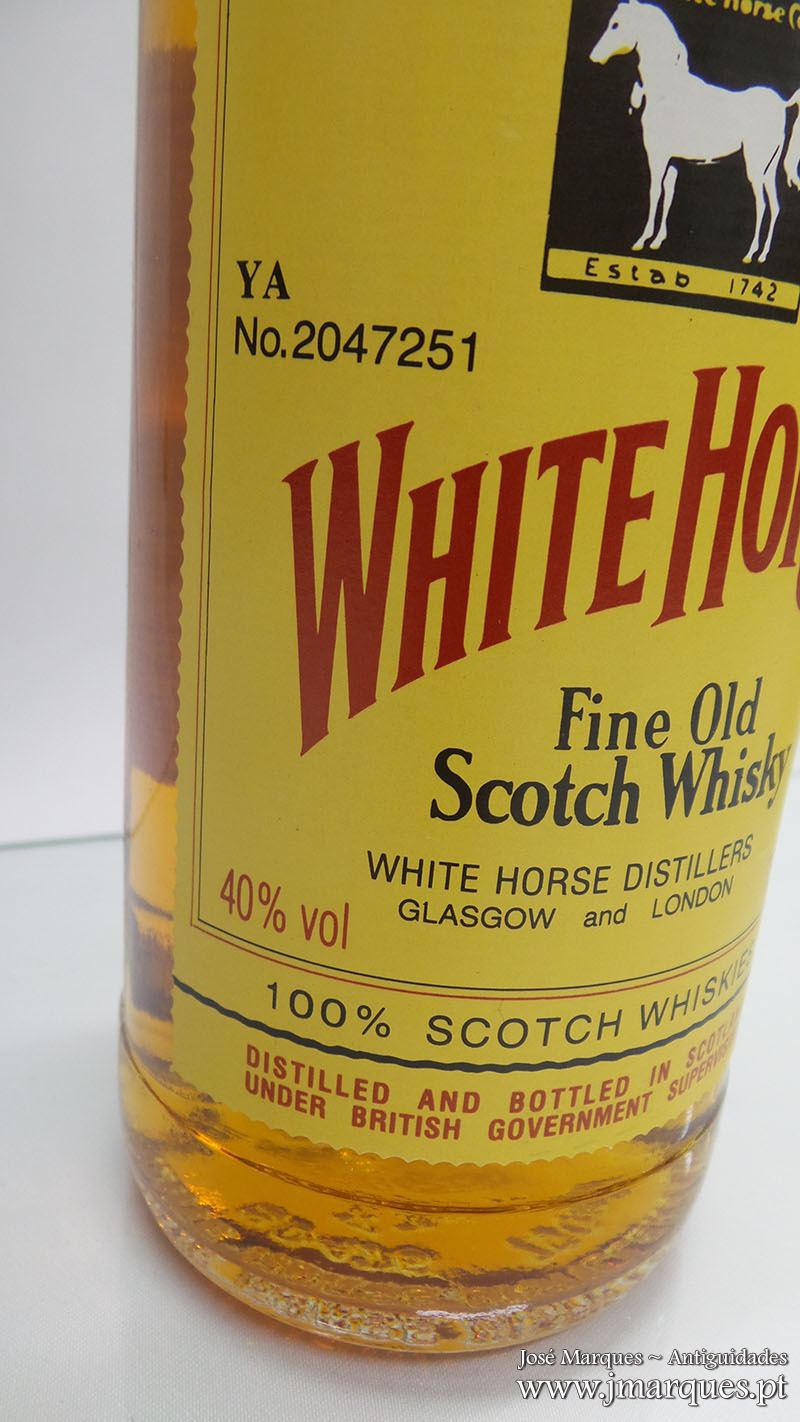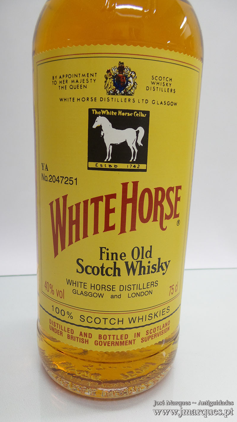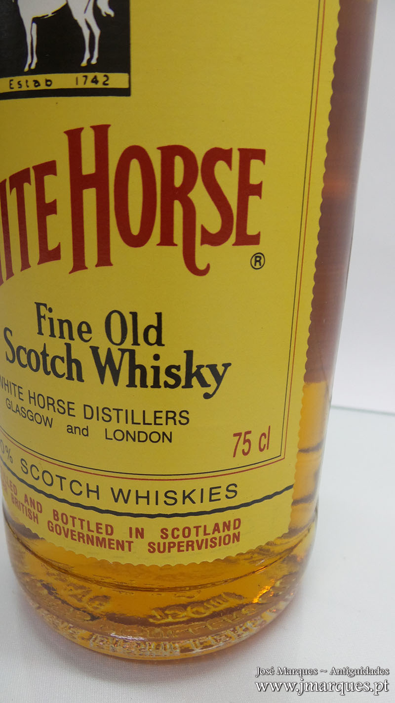 Garrafa de Whisky White Horse Fine Old Scotch Whisky.
