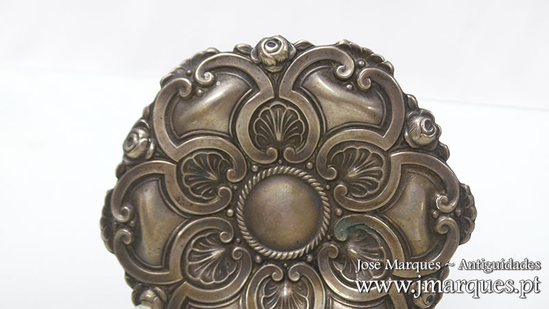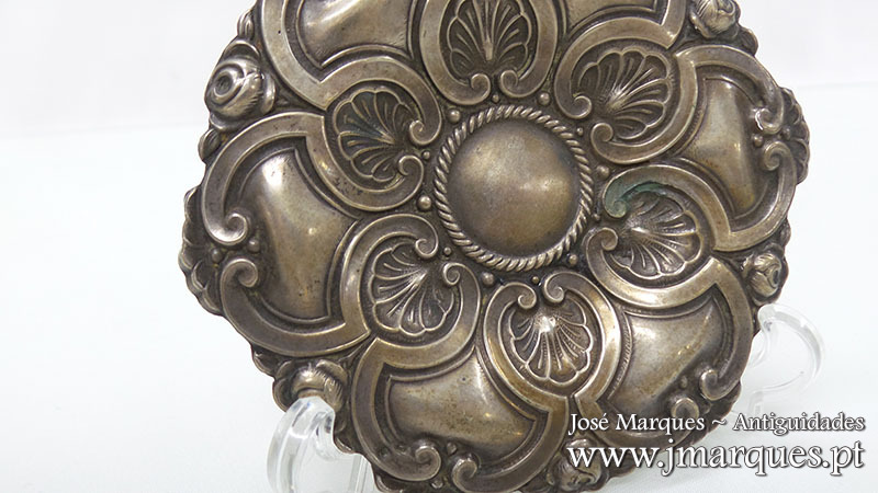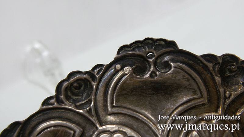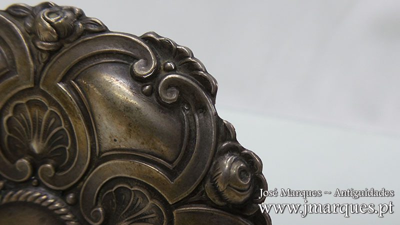 Salva pequena em prata portuguesa com a marca de contraste Javali de 833/1000 milésimas.