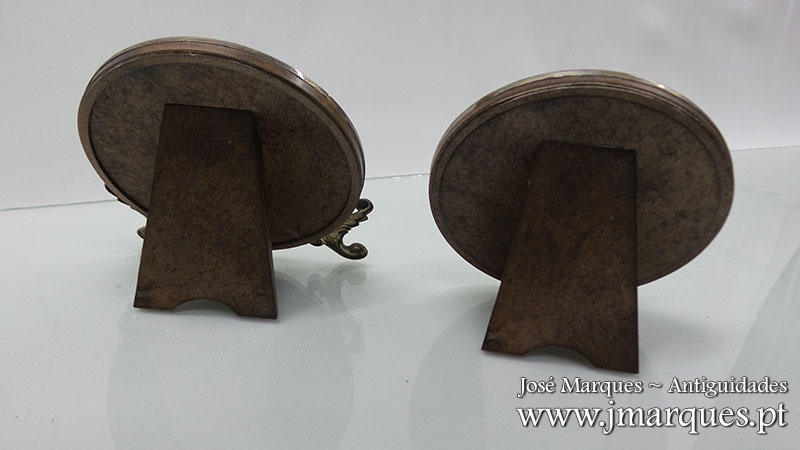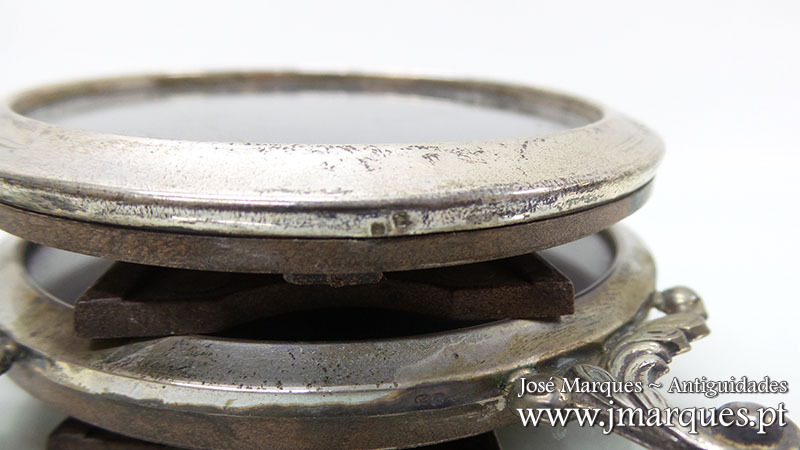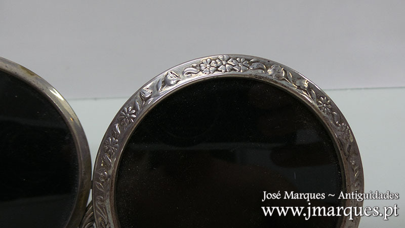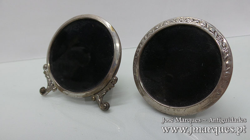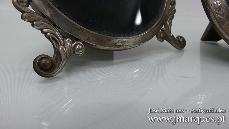 Par de molduras em prata com marca de contraste. Sendo uma com pés. Conforme as fotografias.