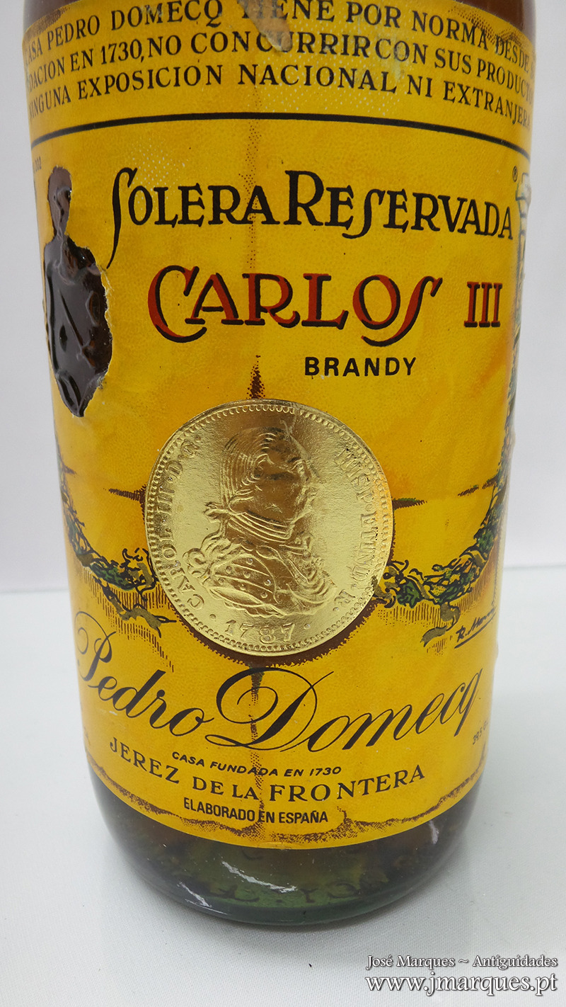 Garrafa antiga de Brandy Carlos III Solera Reserva – Pedro Domeq.