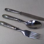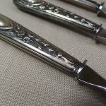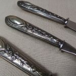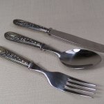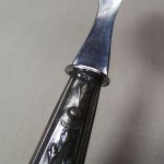 Conjunto de três talheres com os cabos em prata marcada com contraste. A dimensão apresentada é da peça maior.